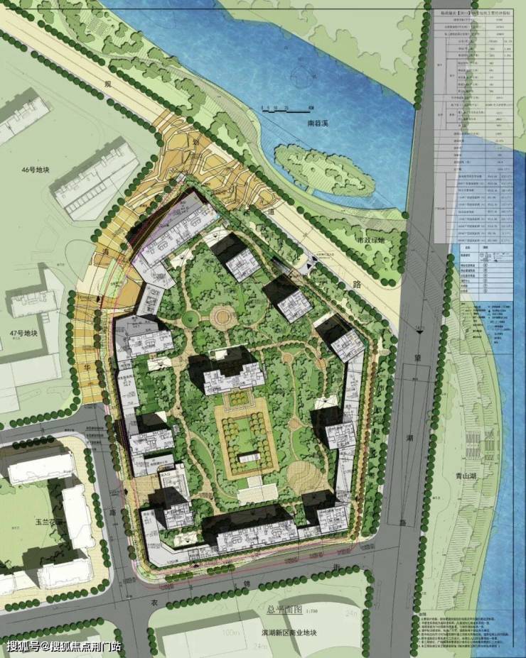 本地块东侧隔望湖路与青山湖隔路相望,东侧滨水区域为公共休闲绿带,景观资源极佳,地块西侧隔青龙路为玉兰花园小区,南侧隔衣锦街为规划中的商务地块。该地块总建设用地面积为57460平方米。