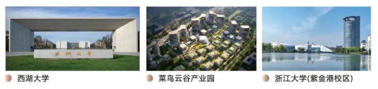 云谷学校,西湖大学云谷校区,浙江大学紫金港校区,育华学校,从幼儿园到小学、中学甚至大学一应俱全,区域书香文墨氛围异常浓郁