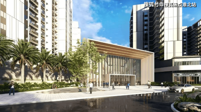 内部配套:小区实行人车分流,车位按 1:1 配置,首层全部架空,层高为 4.5 米,作为业主的休闲泛会所。内部还配备了瑜伽廊亭、儿童娱乐场所、健身平台、篮球场等设施,东侧沿街架空层规划有近 15,000 平米的配套及商业,形成一条长达 500 米的商业步行街,包括一所超过 2000 平米的 6 班幼儿园、一家近 1200 平米的超市、近千平米的文化活动中心,以及特色餐饮、生活便利店、休闲娱乐设施、医务室、银行、邮政、派出所、社区服务中心等。