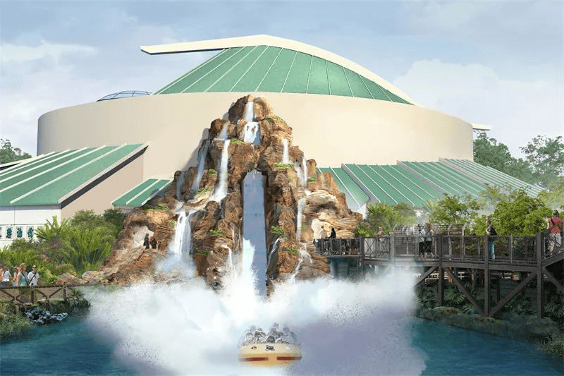 全新侏罗纪无界船行项目《穿越侏罗纪》规划了人行步道(总长约160米)与河道(总长约580米)两条探索动线人船运营,单次游览时长约10分钟,每小时游客容载量可达800人,将显著提升项目的接待效率与游玩流畅度。
