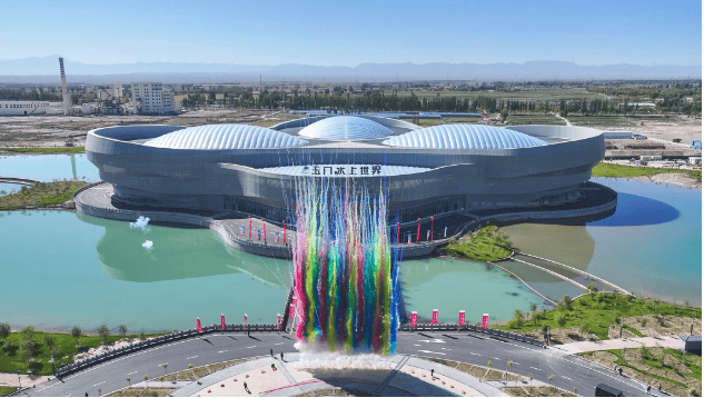 项目总投资6.87亿元,占地面积480.55亩。该项目以“水润戈壁,活力丝路”为核心理念,围绕海洋文化主题打造,是一座集四季恒温游乐、亲子互动体验、文化休闲度假于一体的大型室内水上综合体。园区内包含标准游泳馆、造浪池、酒嘉地区最长(637米)的漂流河、儿童戏水池,以及螺旋滑梯、高速竞赛滑梯等二十余项设施,既能满足专业竞技赛事需求,也能适配大众日常娱乐场景。