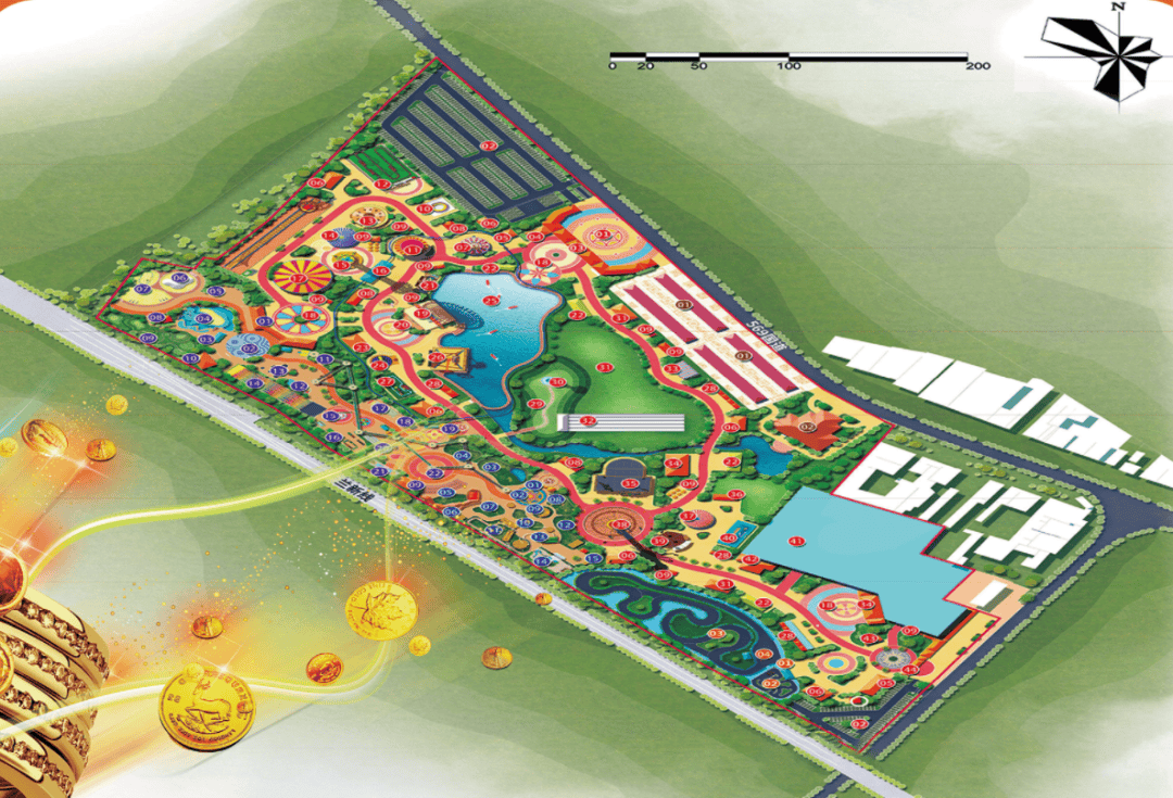 乐园以全球知名动画IP“爆笑虫子”为核心元素,以IP游乐设施为基础、辅以更符合年轻消费者需求的刺激性游乐设施,匹配IP周边产品销售,打造成为佛山地区最大型的“爆笑虫子主题城市乐园”。