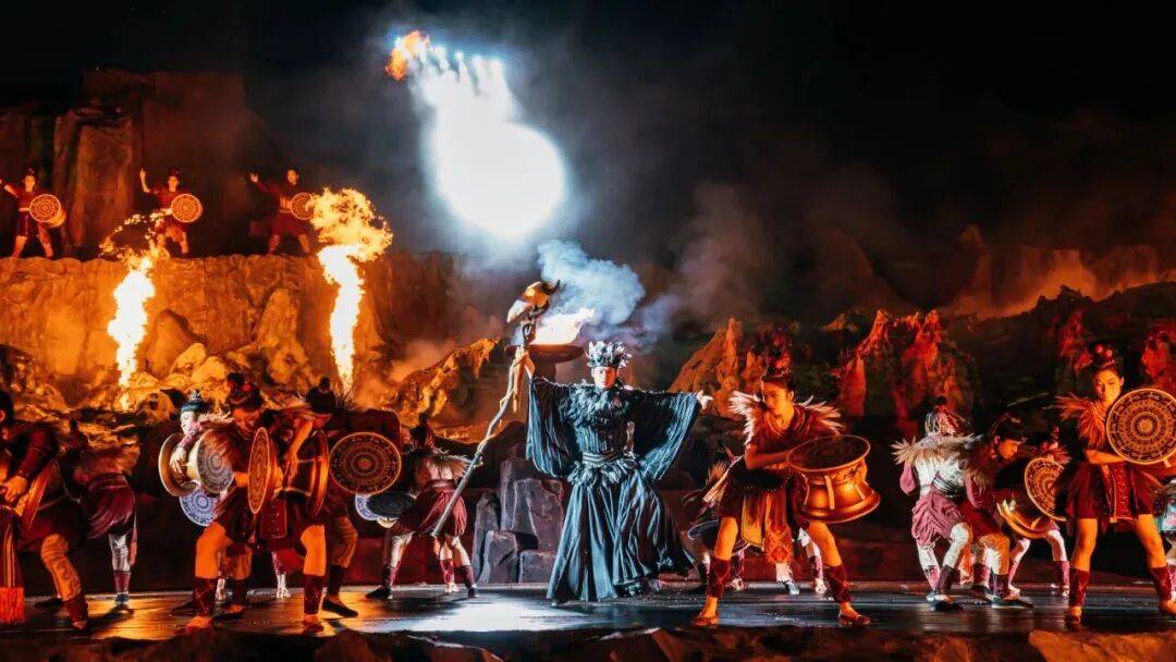 该演出是全国首个以喀斯特地貌为载体的沉浸式演艺项目,《石海长歌》以兴文石海特有的石海涌浪奇观为天然舞台,通过全息投影、声光矩阵等前沿技术,生动呈现了5.6亿年的地质变迁和僰人历史。这场演出采用“行进式躺游”观演模式,让观众在星空下沉浸式感受70分钟的视听盛宴。