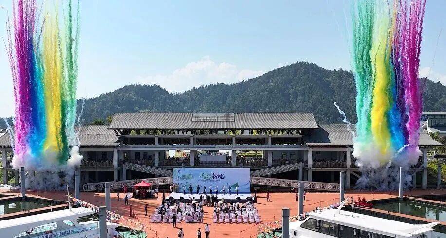 作为全国首部以福文化为主题的大型沉浸式游船演艺,《福地长歌》项目以榆树湾码头为起点,以㵲水河为轴线,贯穿榆树湾、天问岛、东盟集三大景区,全长5.2公里。该项目依托船载多媒体科技与两岸大型实景光影演艺,将戏曲、民族民间舞蹈和民歌等多种表现形式融入其中,用50分钟的沉浸式航行让游客在欣赏㵲水自然美景的同时,开启一场穿越怀化人文历史的寻福之旅。