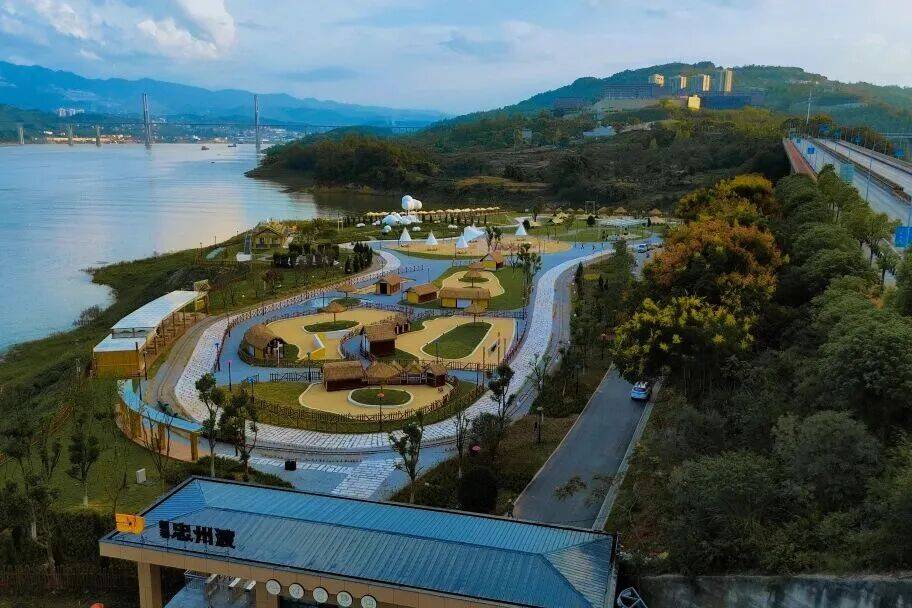 橘若·忠州渡占地21.7万平方米,是集生态休闲、文化体验、亲子游乐、网红打卡于一体的综合性公园。项目以“慢渡时光,邂逅忠义”为核心,串联起网红露营区、无动力乐园、江景书店、户外攀岩等多元业态,更以“青年友好”为底色,通过开放式空间、低门槛消费、文化浸润场景,将长江的自然馈赠与忠县的人文底蕴编织成一幅“一步一景,一景一情”的生活画卷。
