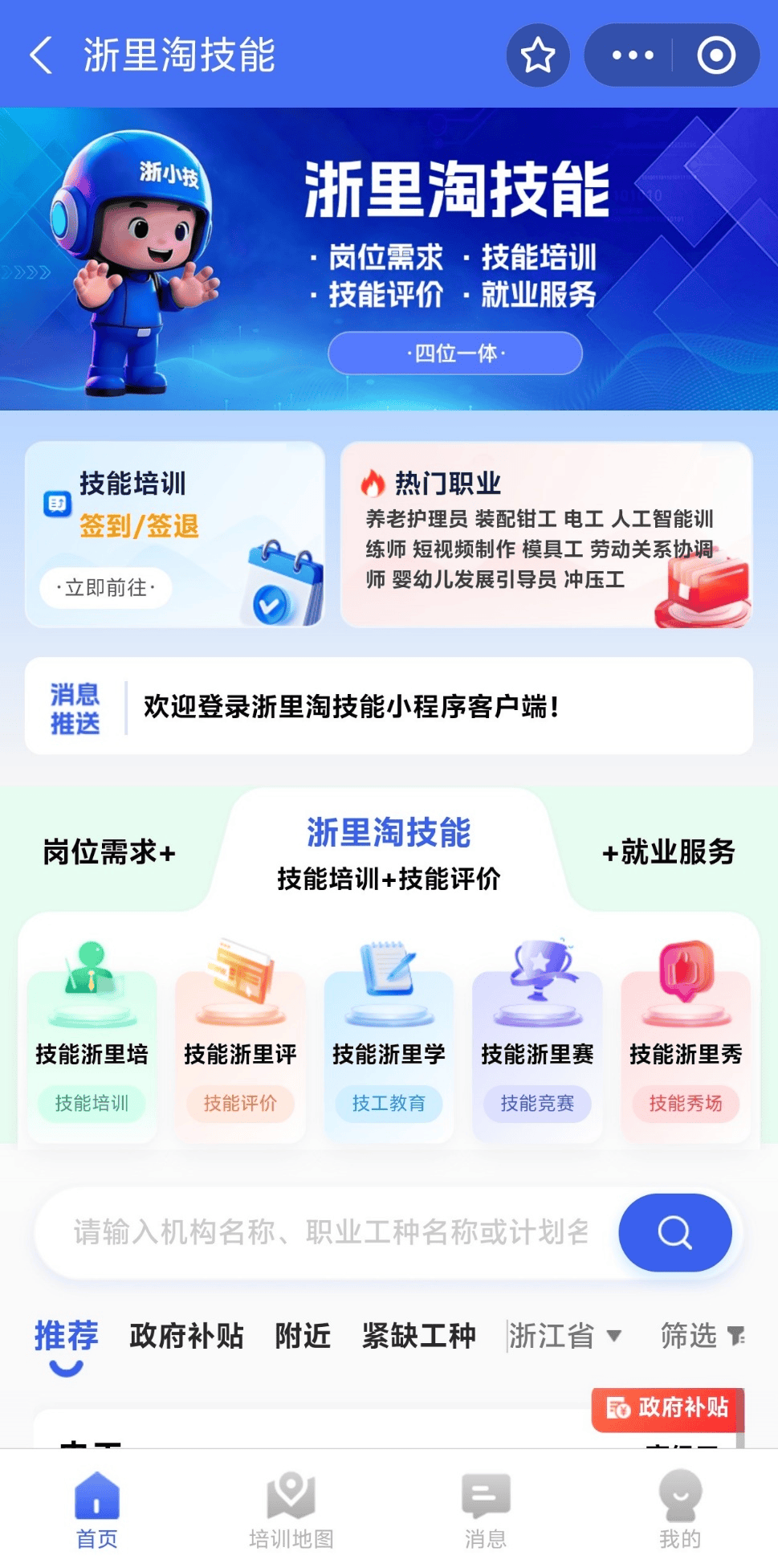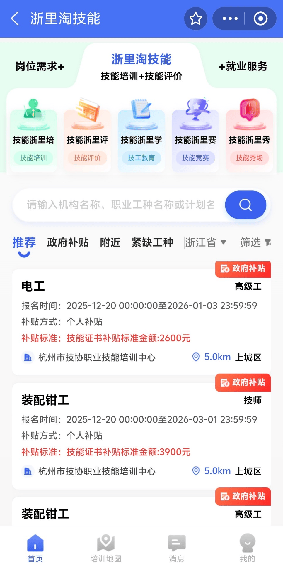 “浙里淘技能”包括“技能浙里培”“技能浙里评”等服务。其中,“技能浙里培”聚焦劳动者技能培训需求,整合全省优质培训资源,提供技能培训计划查询、在线报名、补贴申领、培训机构查询等一站式服务。“技能浙里评”面向广大技能人才提供在线技能评价服务,结合个人技能现状,助力职业能力稳步提升。支持技能评价在线报名,流程清晰、操作便捷;评价通过后,系统主动推送补贴申领入口,申领更省心、更高效。后续还将上线“技能浙里学”“技能浙里赛”“技能浙里秀”等模块。
