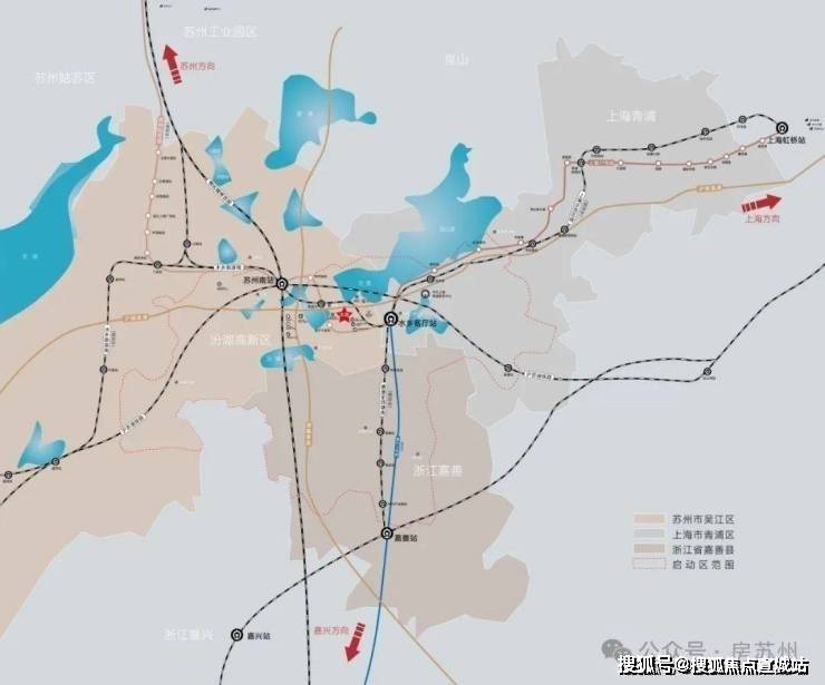 【高铁直达虹桥下一站】苏州南站(汾湖站)位于长三角一体化先启区——汾湖,沪苏湖铁路、通苏嘉甬城际高铁于此呈“十字”交汇,其中沪苏湖铁路由上海虹桥枢纽引出,途经上海松江、苏州吴江,至浙江湖州站,通车后将实现由汾湖8分钟到松江,20分钟到达上海虹桥枢纽,将汾湖与上海更紧密的联系在一起。