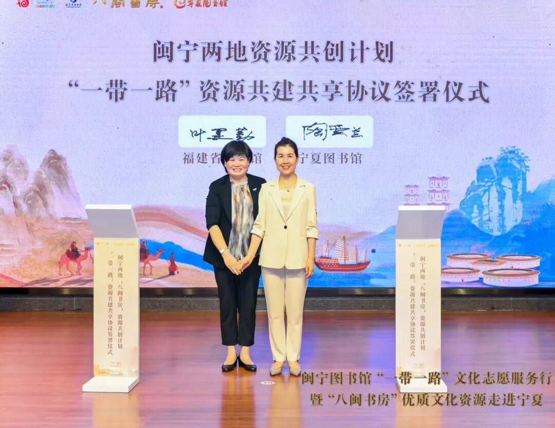 两馆正式签署了特色数字资源共建共享协议,宁夏图书馆自建的60集《诗词中的宁夏》系列电视专题片等地方文化资源建设成果,将与福建省图书馆的75集《丝路百工》电视纪录片等资源实现互惠授权使用,共同推进海陆丝绸之路文化资源的深度融合与共享。